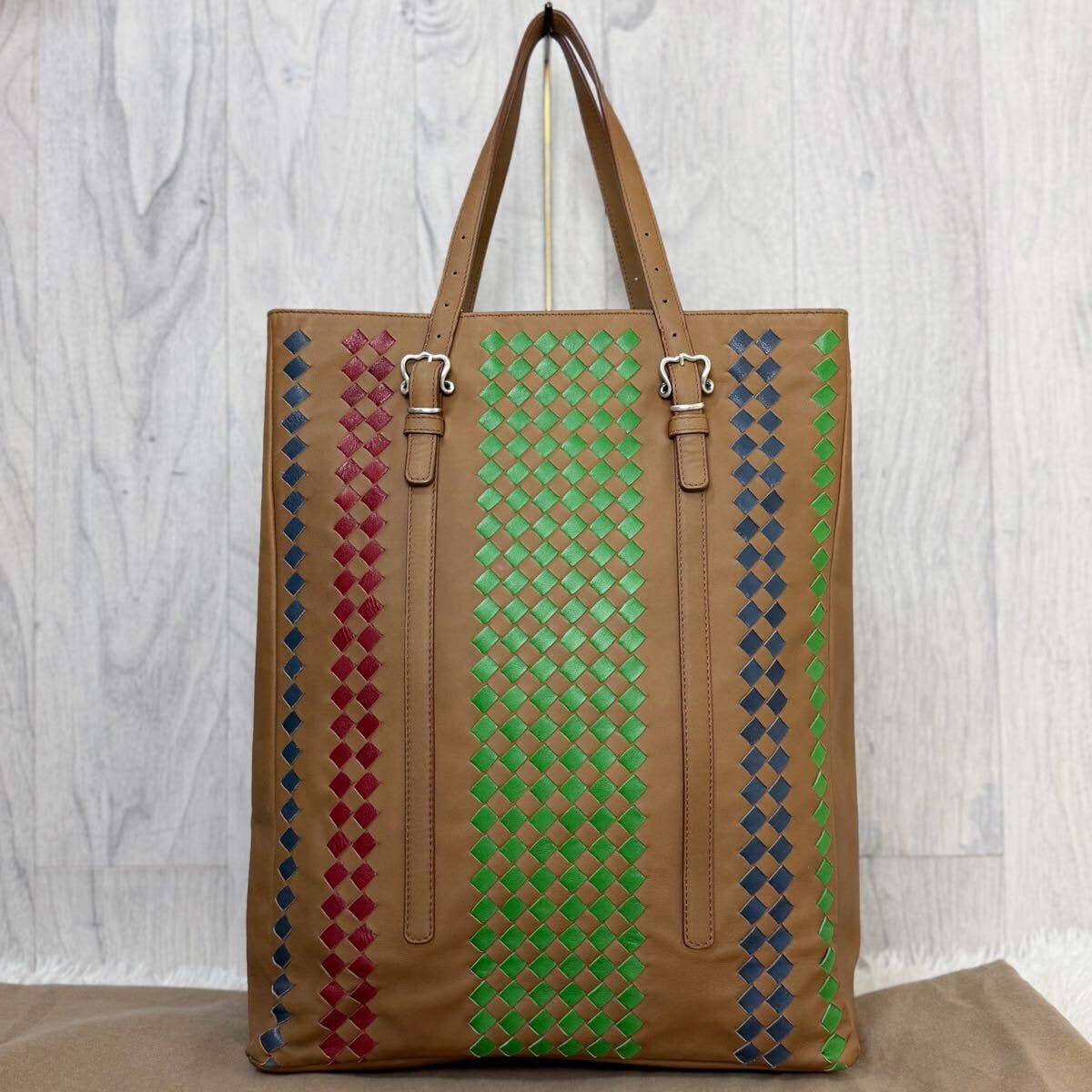 BOTTEGA VENETAのマルチカラー イントレチャート レザー ショルダー トートバッグです。