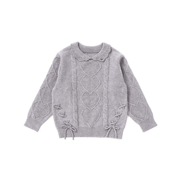 女の子らしいデザインを詰め込んだ襟付きの長袖ニットトップス。