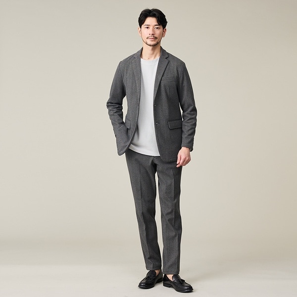 ビジネス、カジュアルシーン問わず、ON/OFF兼用可能な万能セットアップです。