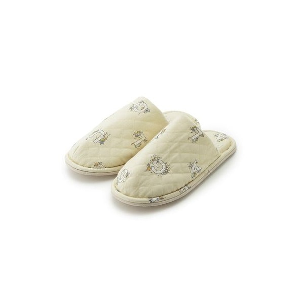 GELATO PIQUEのロゴアルファベットに、小さな星々をあしらったPOPなルームシューズです。中綿入りのキルティング生地に、遊び心あるアルファベットプリントを散りばめました。踵の位置にPIQUEのロゴ刺繍も入っています。カラーはベーシックなクリームとネイビー。同シリーズのルームウェアと合わせて、ギフトにもおすすめのアイテムです。