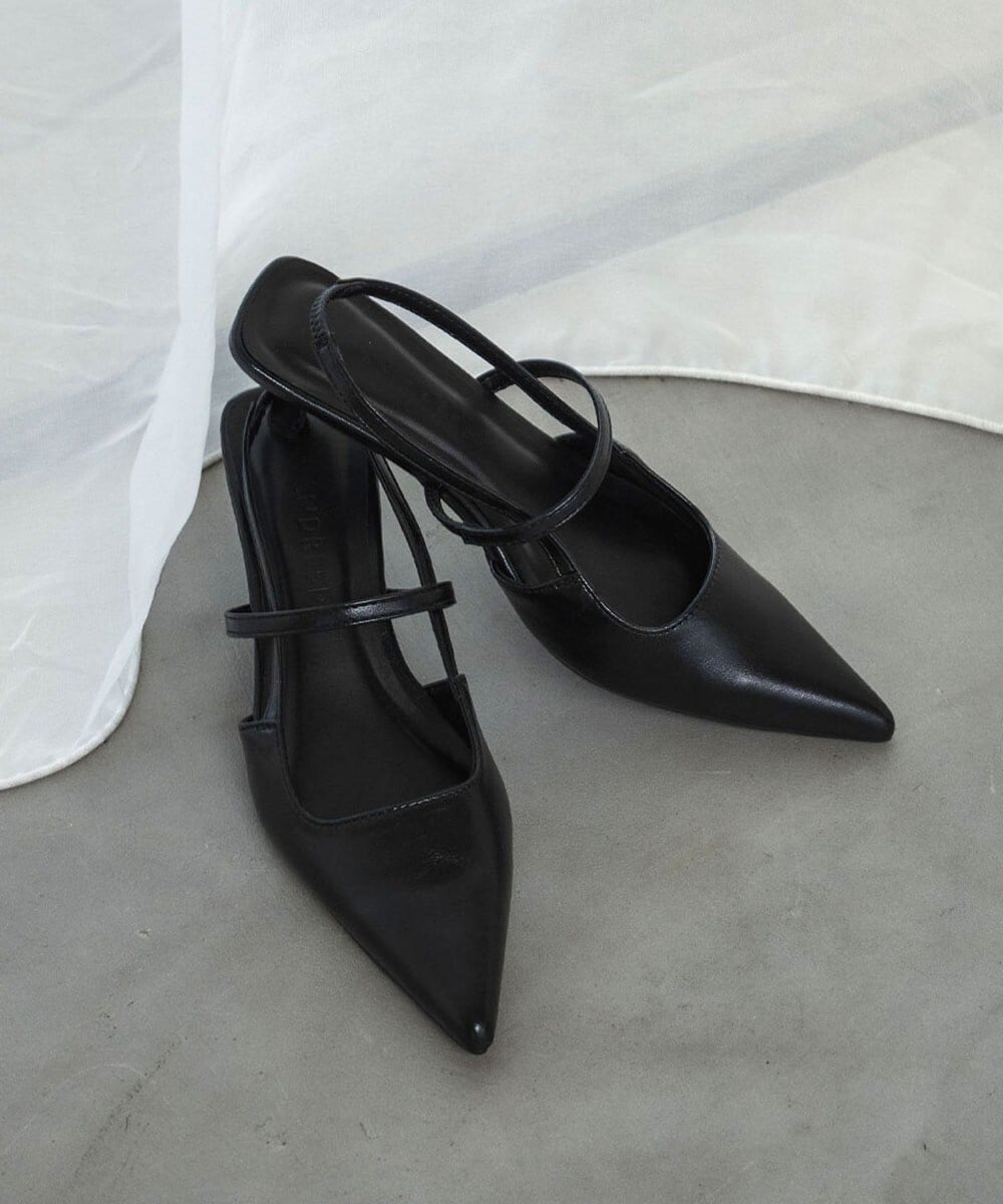 ブラック ポインテッドトゥ スリングバックミュール