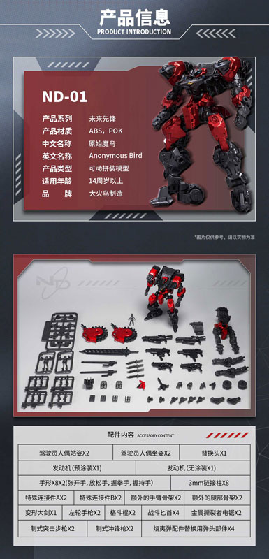BIGFIREBIRD BUILD社(大火鳥製造)企画の下、正道SF漫画『バード/バイナリ(BIRD/BINARY)シェード』より、1/60スケールプラスチックモデルキット「アノニマス・バード」が登場!