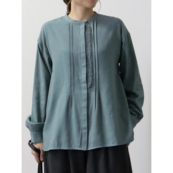 繊細なレースをフロントにあしらい、さりげなく女性らしさを添えたブラウス。