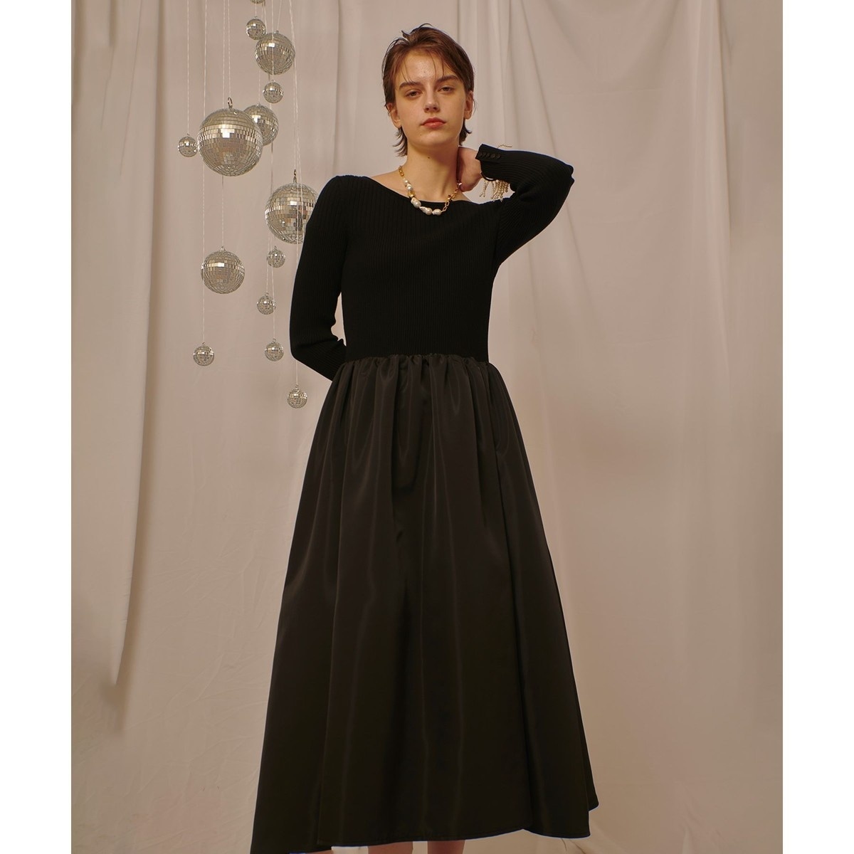 ニットとスカートの切り替えはゴム仕様になっていてノンストレスで着ていただけます。