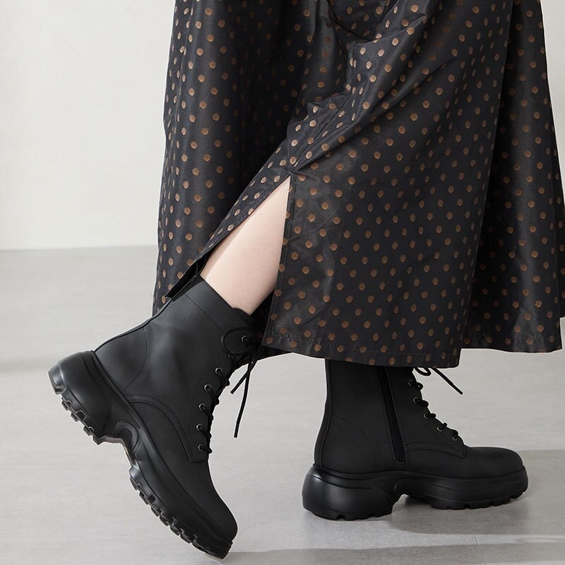 丸みを帯びたボリュームソールが可愛らしいレースアップブーツは、
