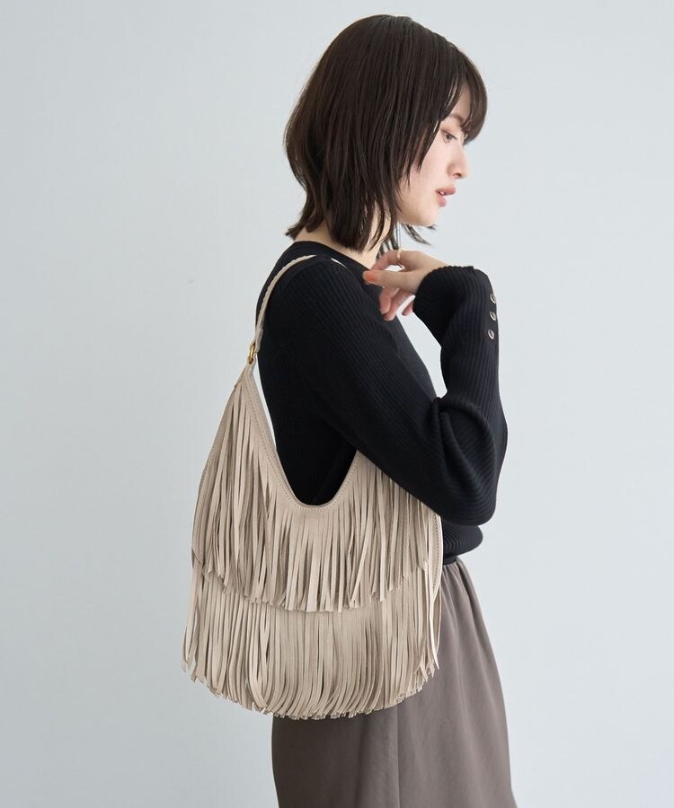 歩くたびに揺れ動く、コーディネートのアクセント使いにぴったりなスエードバッグ。
