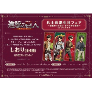フェア・キャンペーン:【12/13~開催】TVアニメ「進撃の巨人」兵士長誕生日フェア~全然なってない すべてやり直せ~in アニメイト【キャラ】