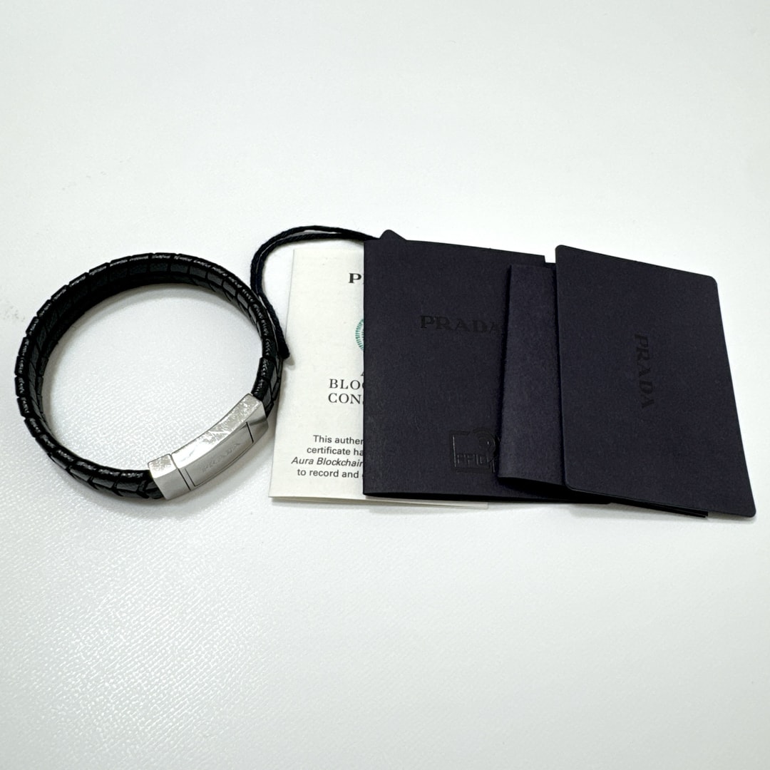 ・プラダの象徴ともいえる「サフィアーノレザー」使用。型崩れや傷に強く、高級感のある質感