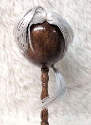 中古ドールウィッグ SDサイズ リボン付き一つ結び グレー系カラー