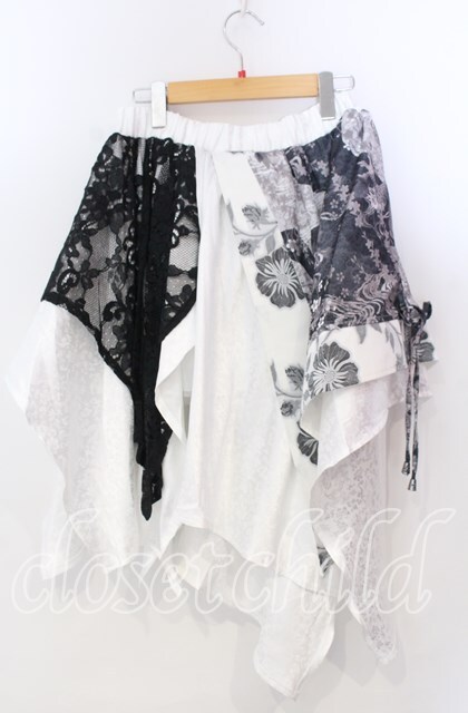 Qutie Frash / 和柄アシメスカート ブラック×ゴールド O-25-11-28-069-QU-SK-OW-OS