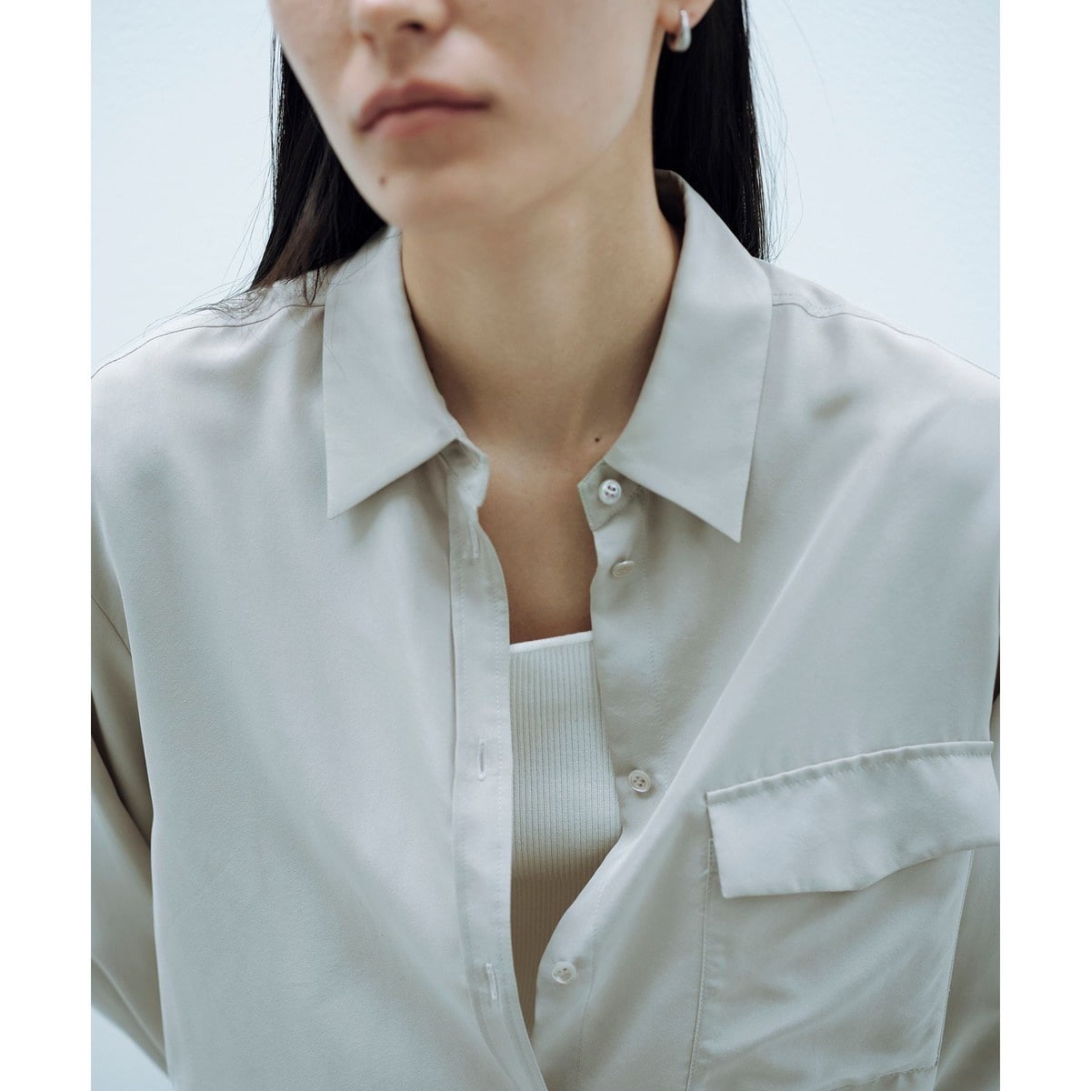 定番シャツをリニューアル。シルクならではの落ち感で女性らしい美しいラインを維持しつつ、