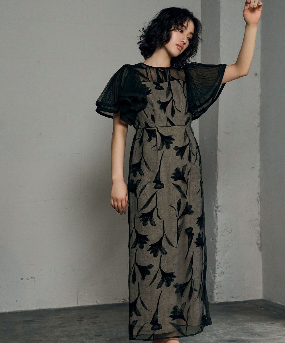 【少々キズあり】metoiティアードスリーブ刺繍パーティドレスチャコールグレーM