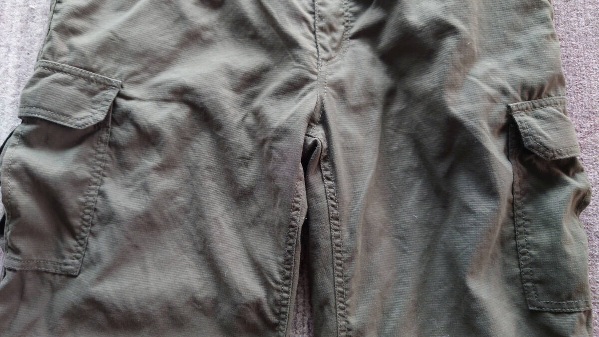 両腰ポケットに加え、背面にも両ヒップ部分に斜めスリット型のかなり深いポケットがあります。カーゴパンツの名の通り、マジックテープ式の大きめのポケットも両脚部分に有ります。