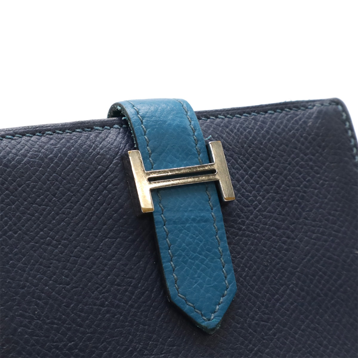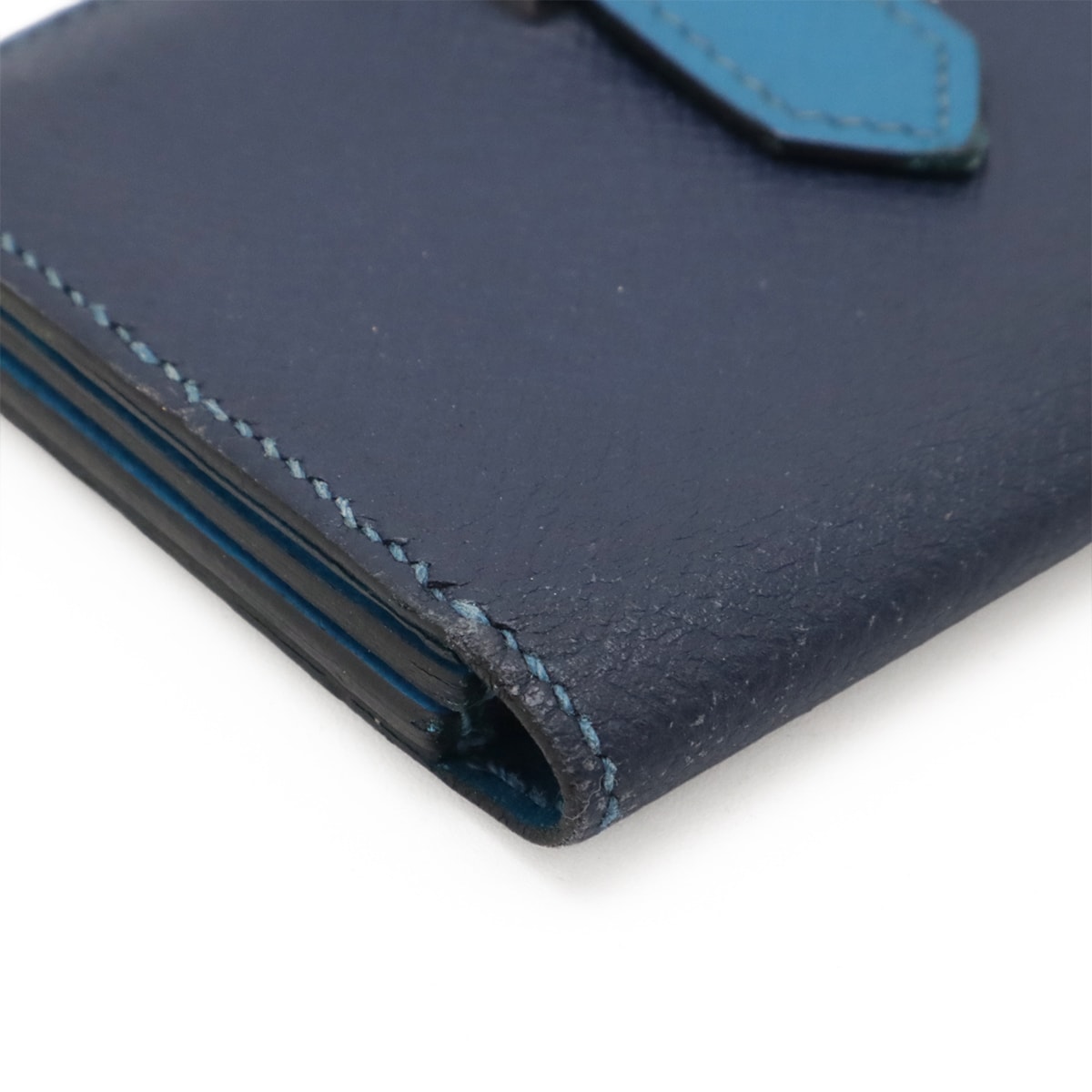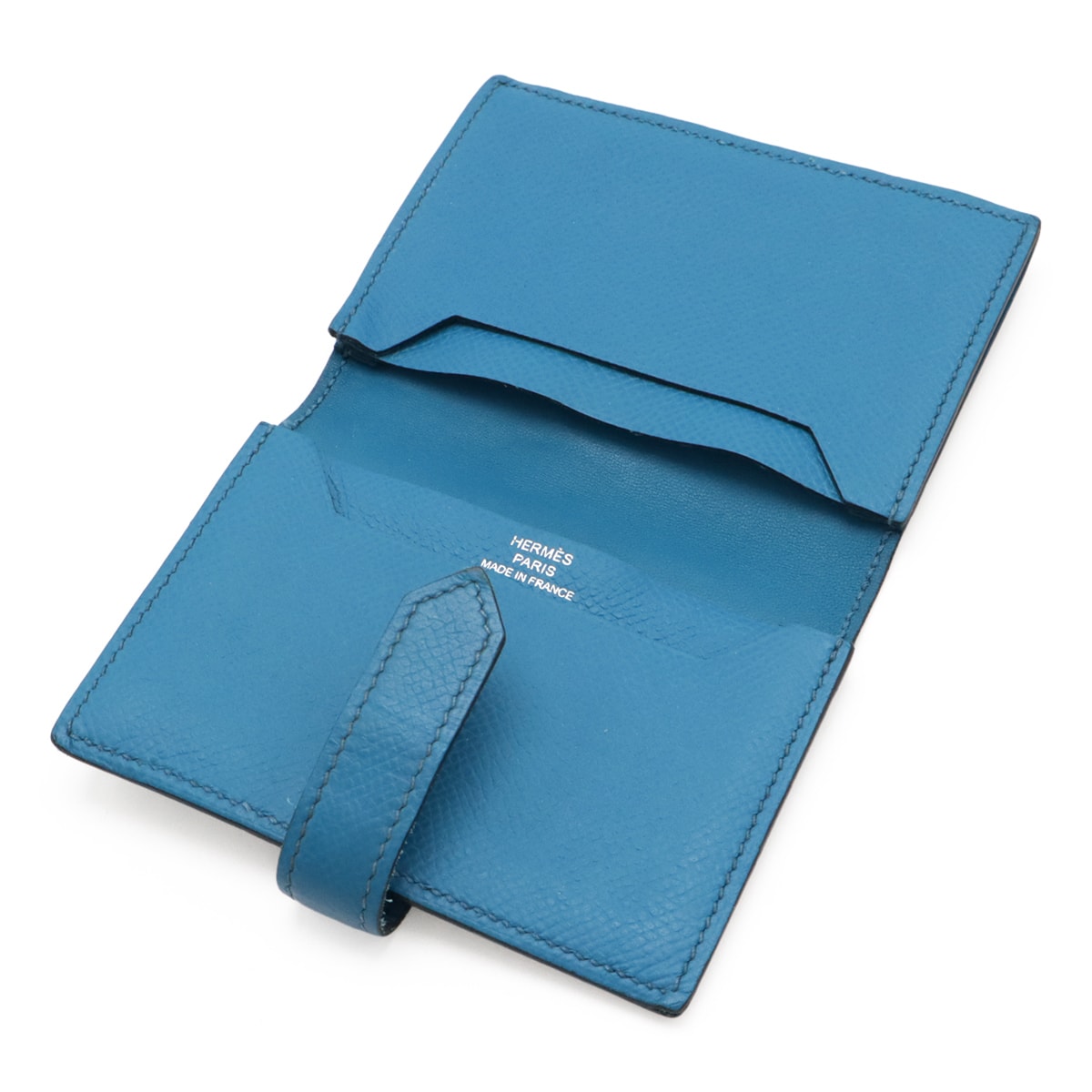 # HERMES エルメス ベアン カードケース 名刺入れ パスケース ヴォーエプソン バイカラー ブルードプリュス ブルーイズミール シルバー金具 □R刻印
