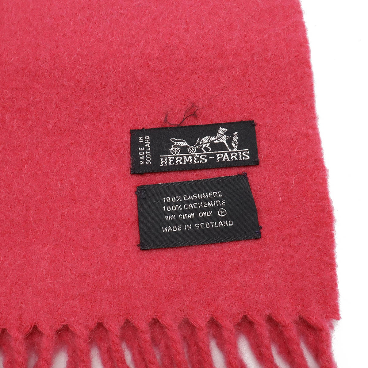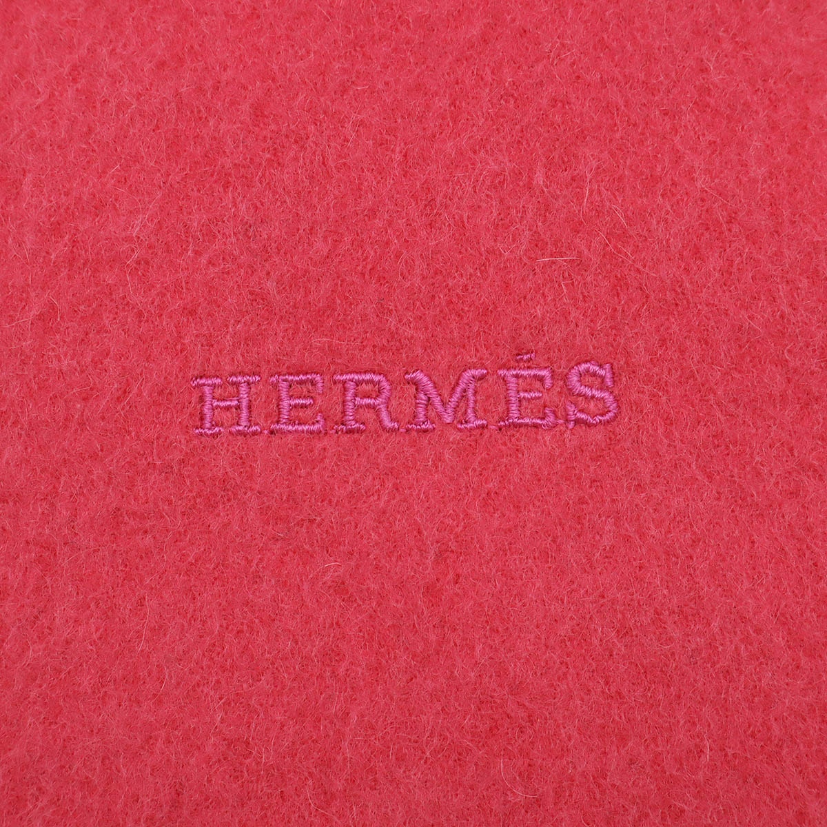 # HERMES エルメス 大判ストール マフラー フリンジ ロゴ刺繍 カシミヤ100% ピンク
