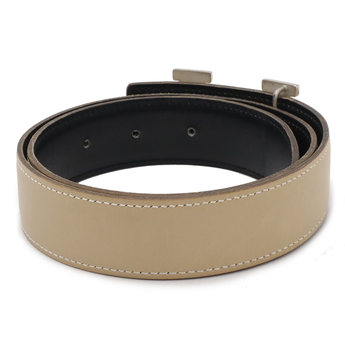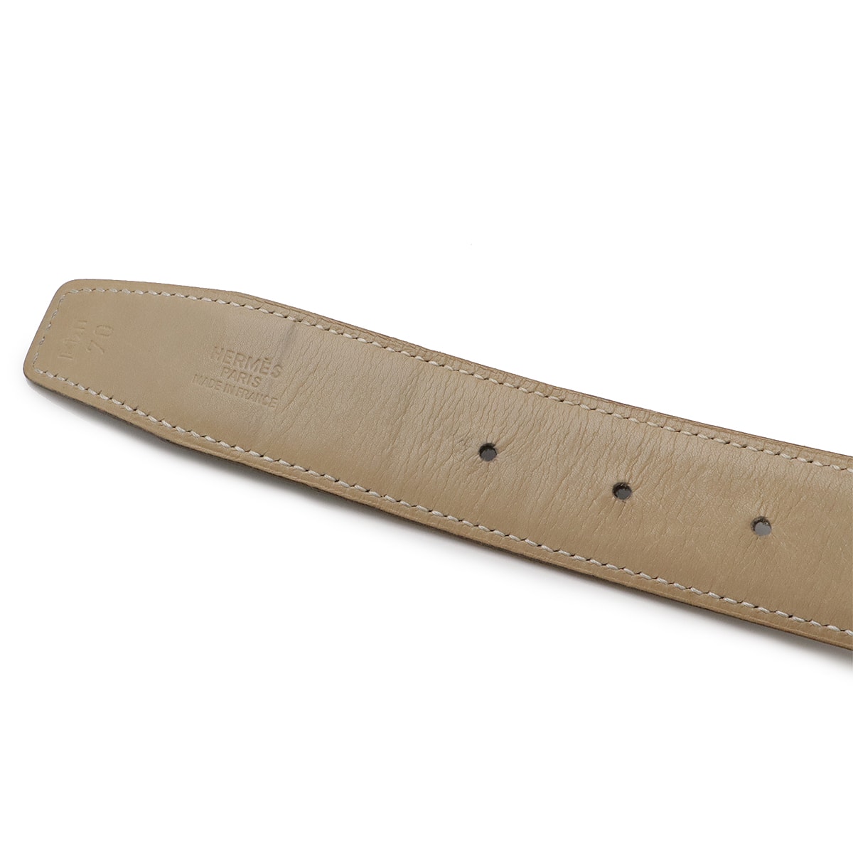 # HERMES エルメス Hベルト リバーシブル レザー サンドベージュ ブラック 黒 シルバー金具 #70 □E刻印