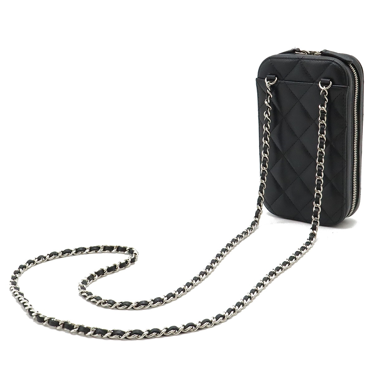 # CHANEL シャネル マトラッセ ココマーク フォン ホルダー チェーンショルダー ショルダーバッグ キャビアスキン ブラック シルバー金具 A70655