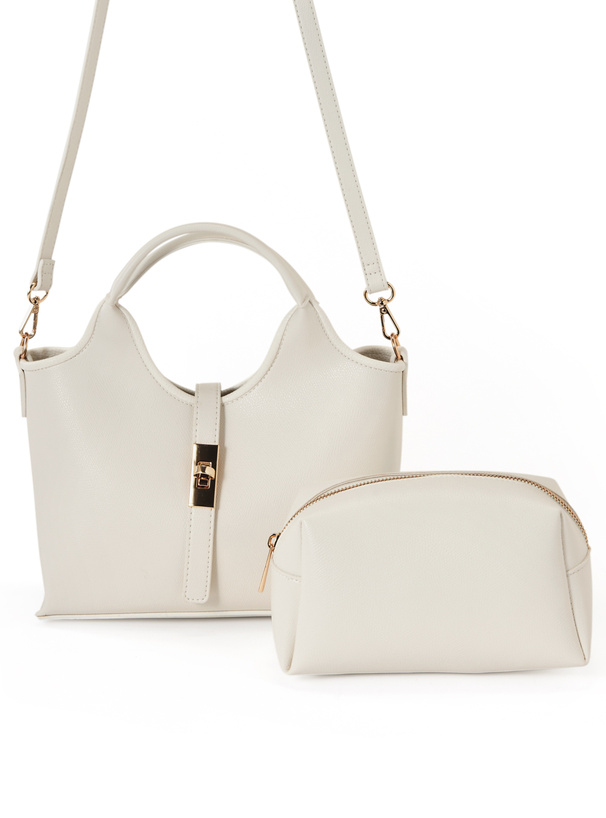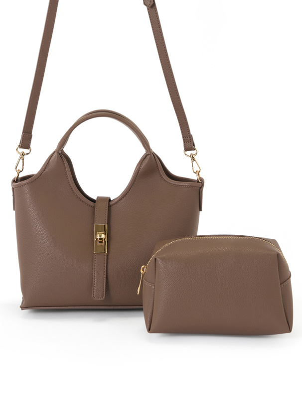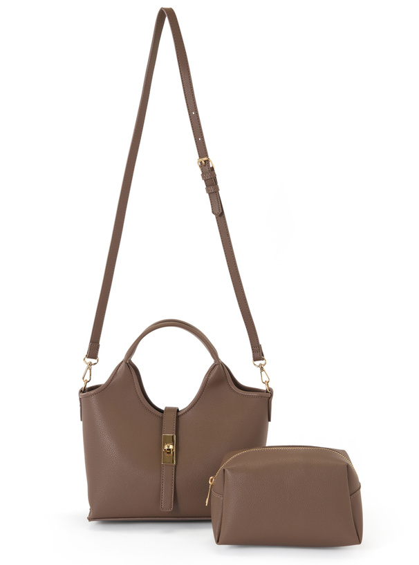 2Wayポーチ付きステッチハンドバッグ[tr1090]