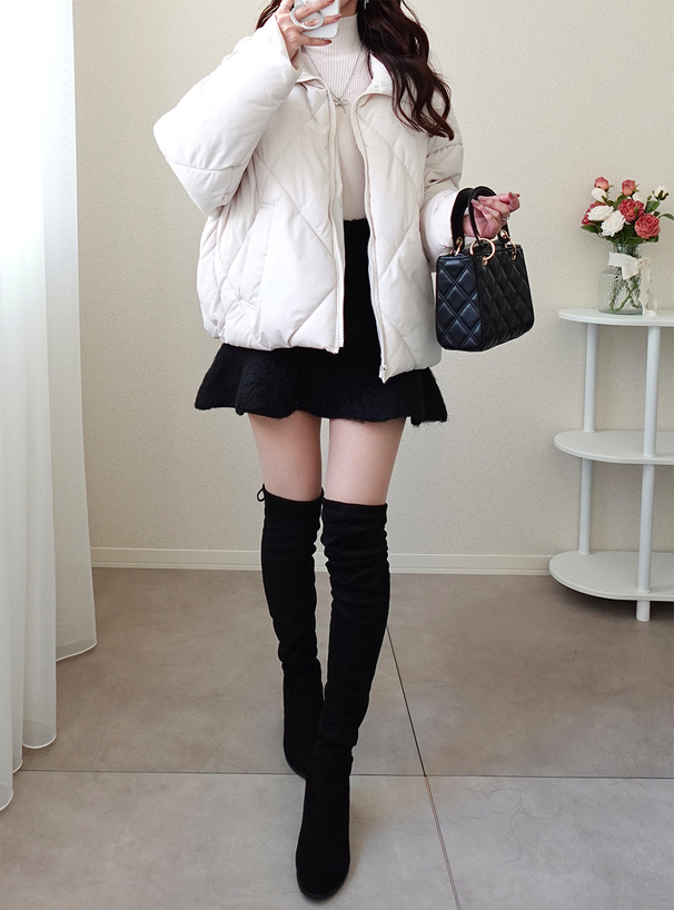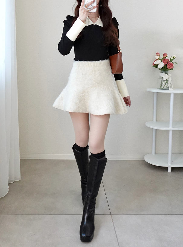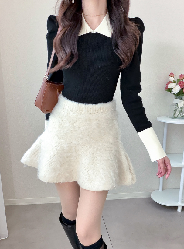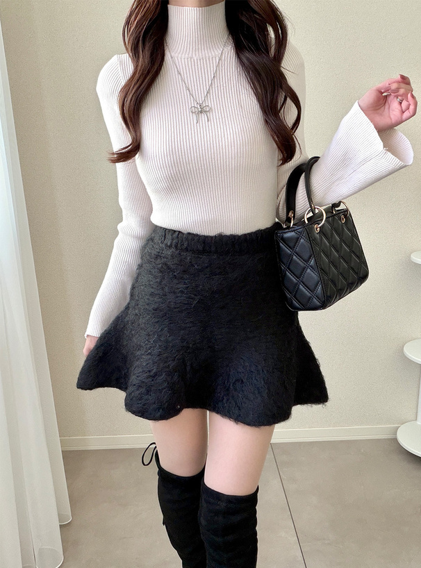程よい厚みで肉感のあるニット素材に起毛加工を施したミニスカート。