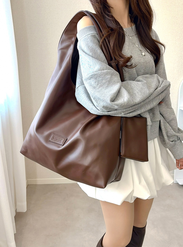 ポーチ付きエコレザーショルダーバッグ