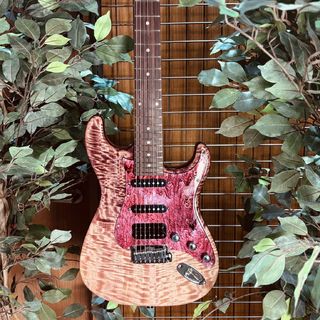 和材として人気の高いトチ材をボディに使用した一本。トップ材には美しいフレイム杢目を有した個体を選定。中~高音域に特徴のある抜けの良いサウンドを持ち、オーバードライブをかけた際の歪の乗りも非常に良く、その音響特性を発揮して様々なジャンルに対応可能です。