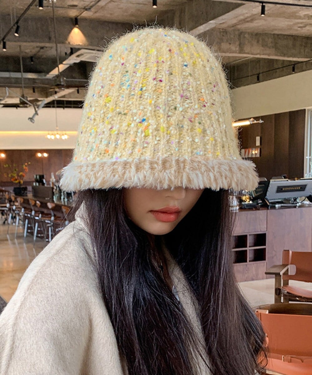 ふわふわとした肌触りの良いニット素材で仕上げたバケットハット。