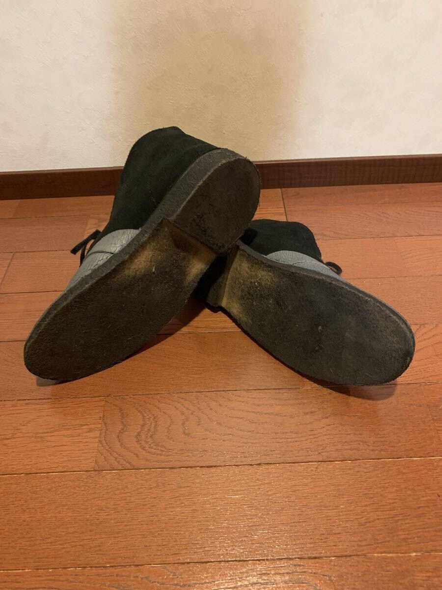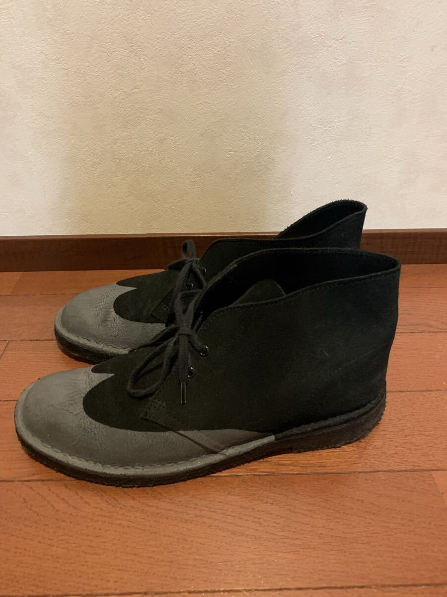 サカイ×クラークスのシルバーペイントデザートブーツ