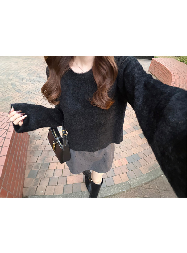 チェック柄フロントオープンバックリボンニットミニワンピース[ru1605]