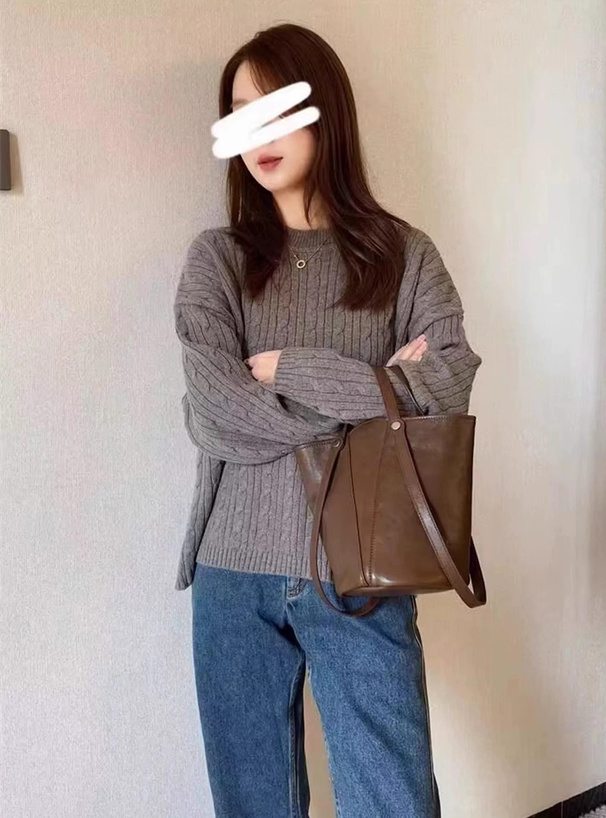 2Wayチェーンデザインハンドルレザーバケツバッグ[yt558]