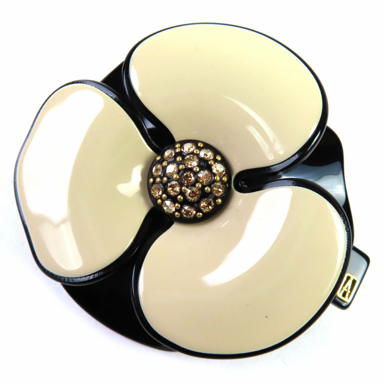 極美品★ALEXANDRE DE PARIS アレクサンドル ドゥ パリ AA6-12286-02 LISERAI スワロフスキー付 カメリア バレッタ (6 cm) ヘアアクセサリー ベージュ フランス製 レディース【中古】