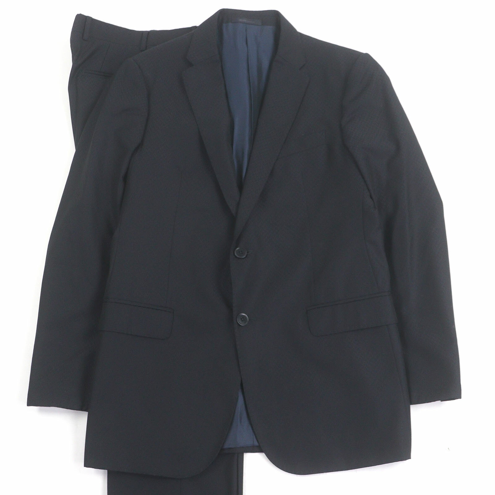 美品□ARMANI COLLEZIONI アルマーニコレッツォーニ M LINE スーパー150sウール ピークドラペル ダブルブレスト スーツ ダークグレー 46 ブルガリア製 正規品 メンズ【中古】
