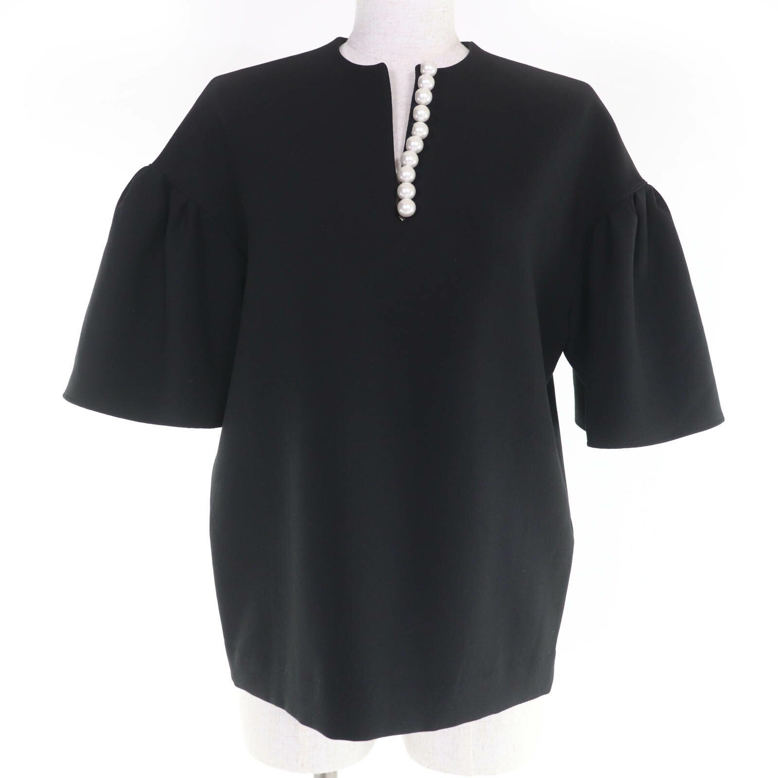 極美品☆YOKO CHAN ヨーコチャン 2023年製 YCB-223-373 フェイクパール ノースリーブ トップス ブラック 36 日本製 正規品 レディース【中古】