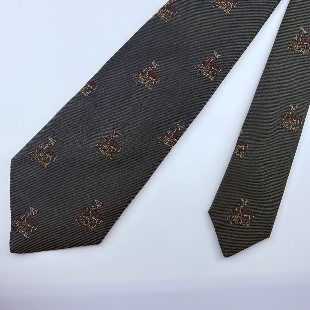 落ち着いたグリーンの地色に鹿(スタッグ)柄が織り込まれた、非常に上品で希少な一本です。スーツスタイルにさりげないアクセントを加えたい方におすすめです。