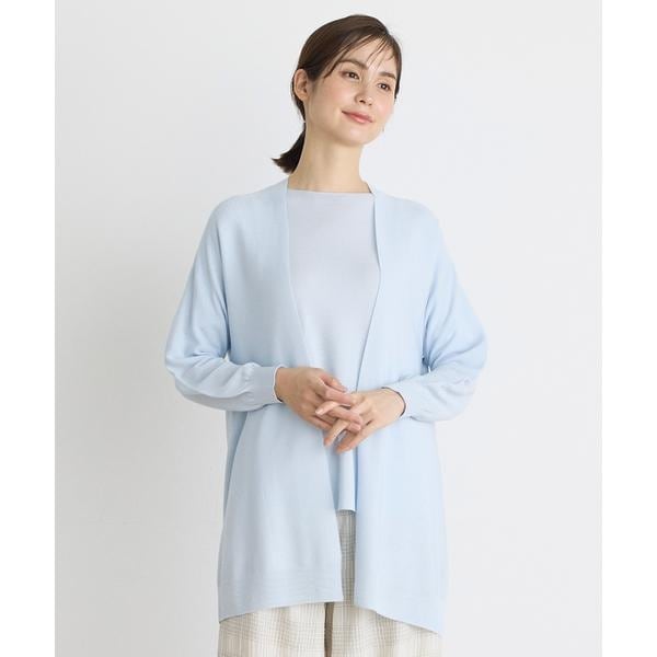 適度なドレープ感とシルクのような美しい光沢感が特徴のロングニットカーディガン。スーパーハイゲージのホールガーメント®機で繊細に編み立てました。ゆったりとしながらも落ち感があり、すっきりとしたシルエットなのでどんなコーディネートにも合わせやすい一枚です。ガーター編みの凸凹のある表面感が特徴。同素材のプルオーバーニットとのセットアップも可能です。・水洗い可同素材のプルオーバーニット品番:1040170014《WHOLE GARMENT®/ホールガーメント®》株式会社島精機製作所が独自で開発した世界初の無縫製ニット横編機によって編成された無縫製ニットウェア。ニット本来の手触りと軽さを引き立て、ドレープ性を高め、ごわつき感をもたらす縫い目をなくすことで、よりよい着心地感を実現します。※ WHOLEGARMENT ®及び ホールガーメント®は、株式会社島精機製作所の登録商標です。《Cuoo/クー》フランドルがメーカーや工場の協力を得て開発した素材。肌に優しく、一年を通して快適な着心地を保つキュプラとポリエステルの交撚糸。キュプラは他の繊維と比べ、摩擦が少なく肌と触れ合っても刺激が少ないため、肌触りが良くやさしい着心地です。吸水性に優れ、べたつきにくくムレを抑えられます。夏はひんやり、冬は暖かく、通年にわたり心地よく着こなせます。