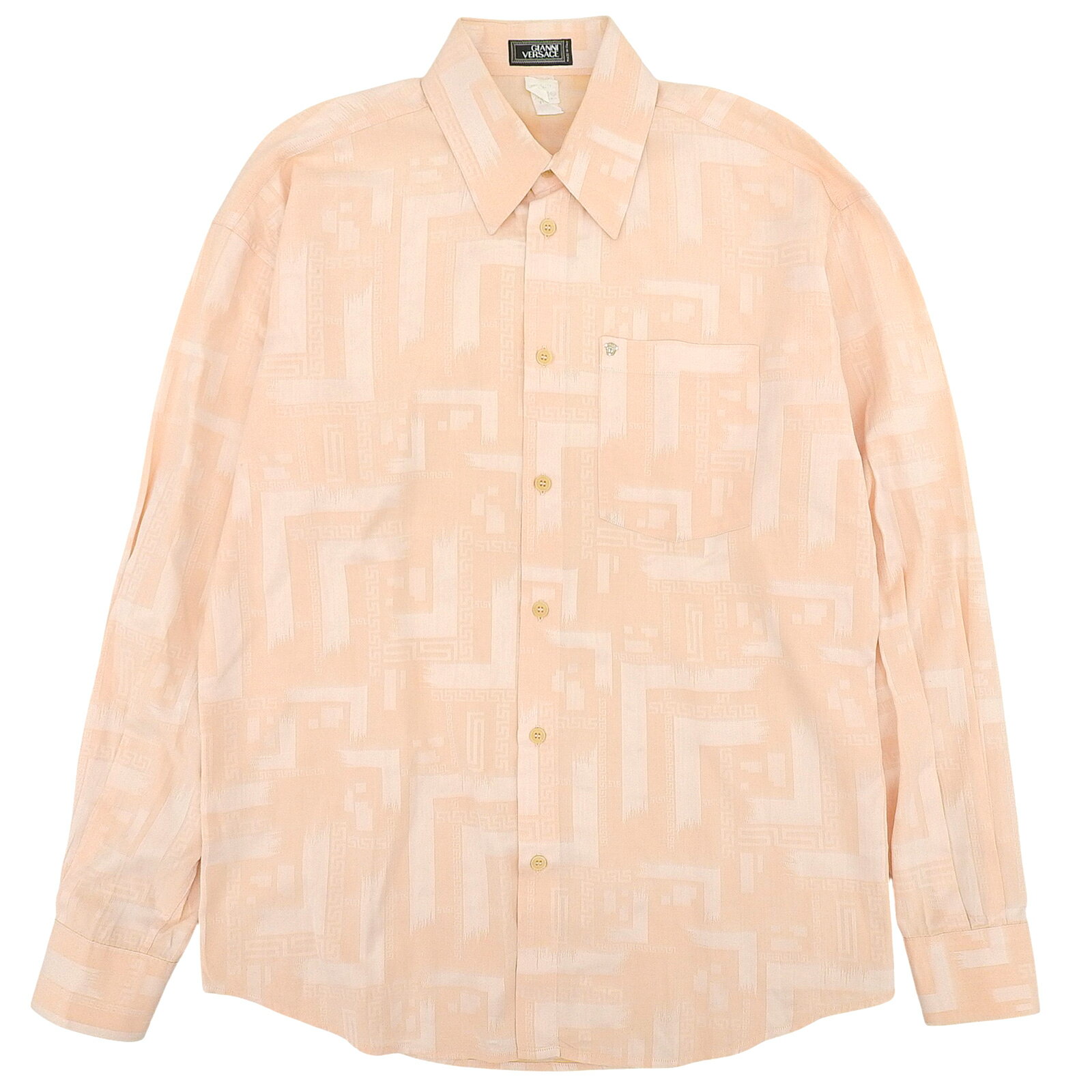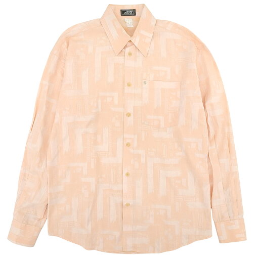未使用品□Gianni Versace ジャンニヴェルサーチ ヴィンテージ シルク100% 総柄 ロングスリーブ 長袖シャツ ブルー系 52 イタリア製 メンズ【中古】