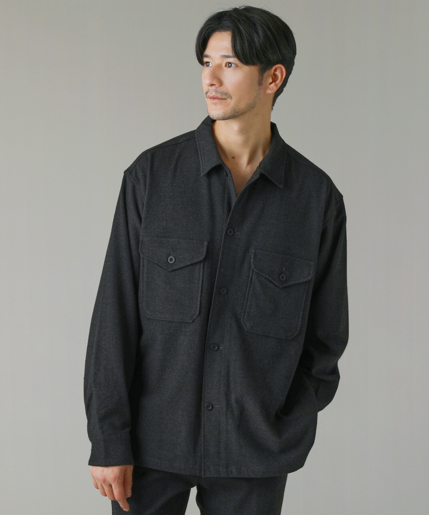 【セットアップ対応】ウールミルド CPOシャツブルゾン/ ボックスシルエット
