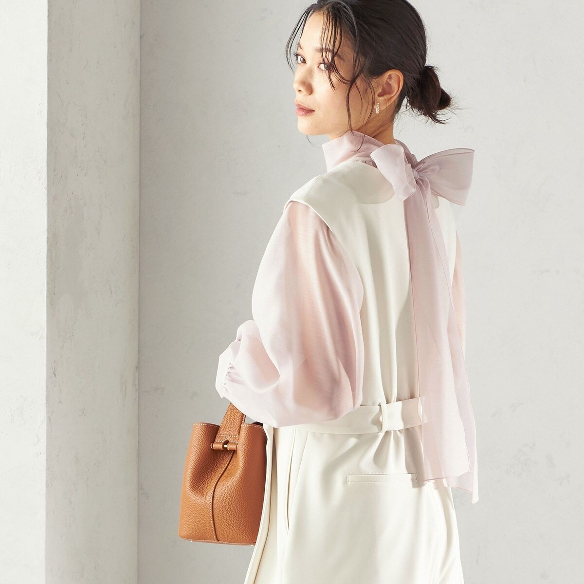 《一部追加予約》〈手洗い可能〉シアー タンブラー リボン デザイン 長袖 ブラウス