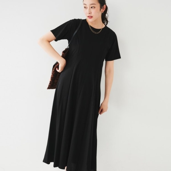 体にフィットしすぎず、エレガントにもこなせるワンピースなので1枚着るだけでオンにもオフにも。