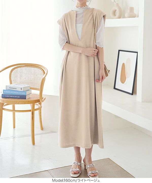 【chignon】ジャンパースカート ロングワンピース ベージュ F 2way