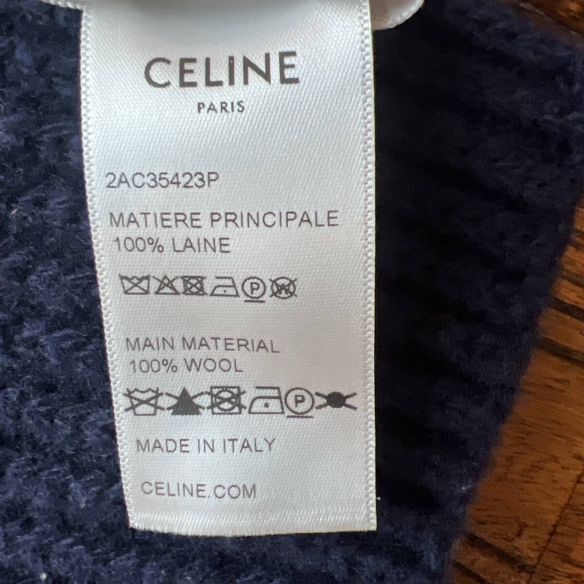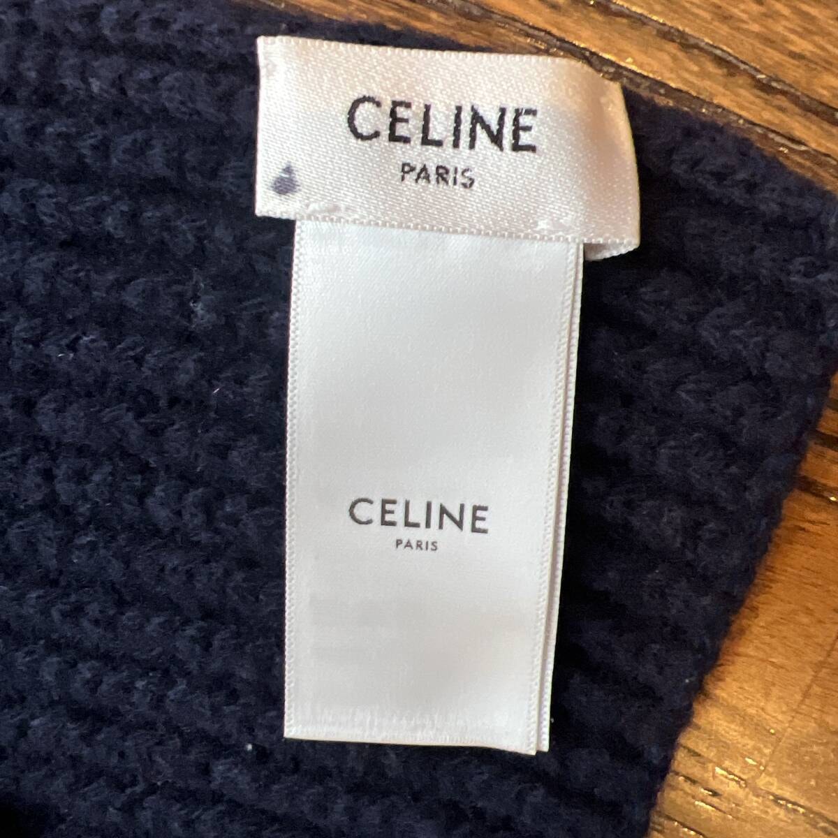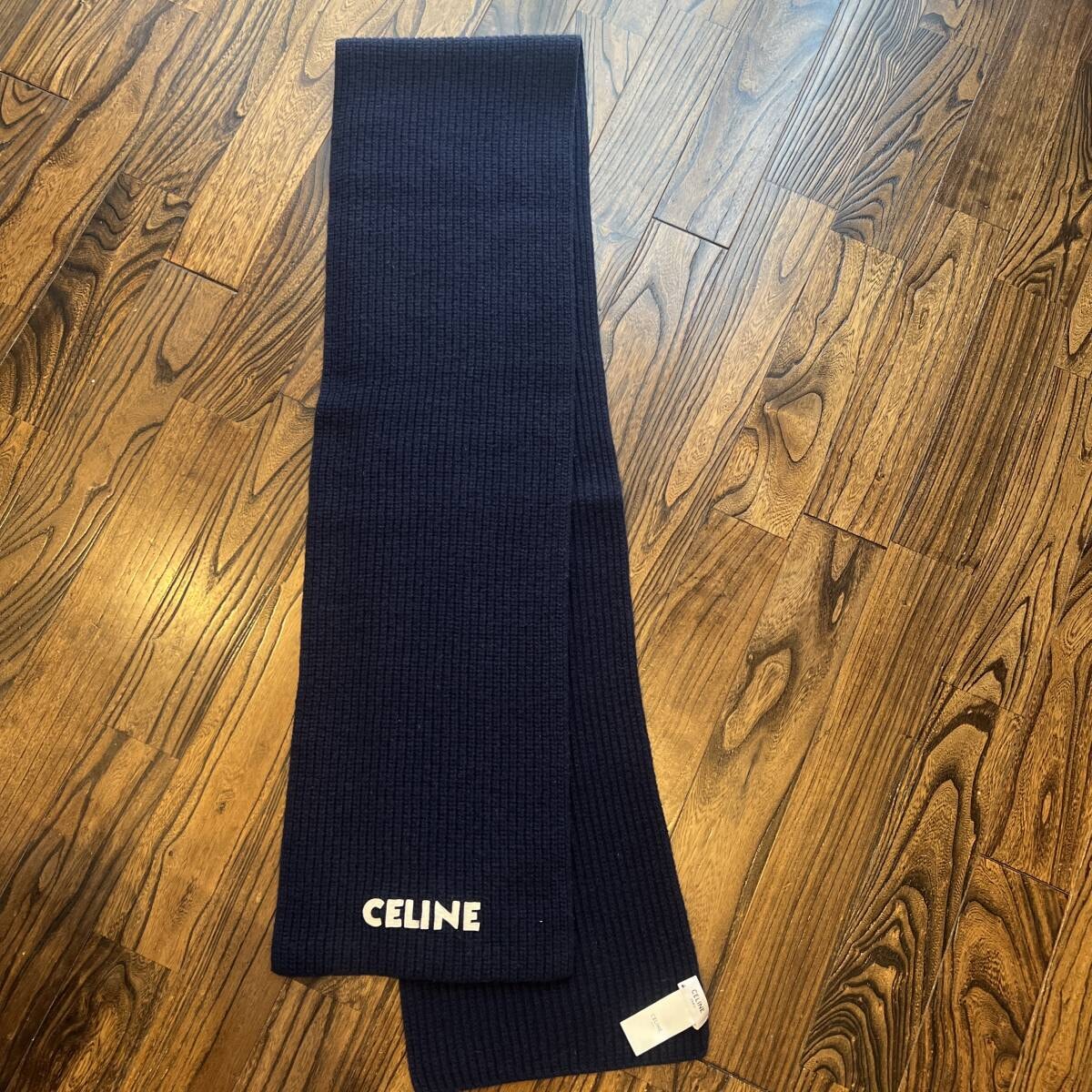 ネイビーのリブ編みマフラー、CELINEのロゴ入り。【正規品】