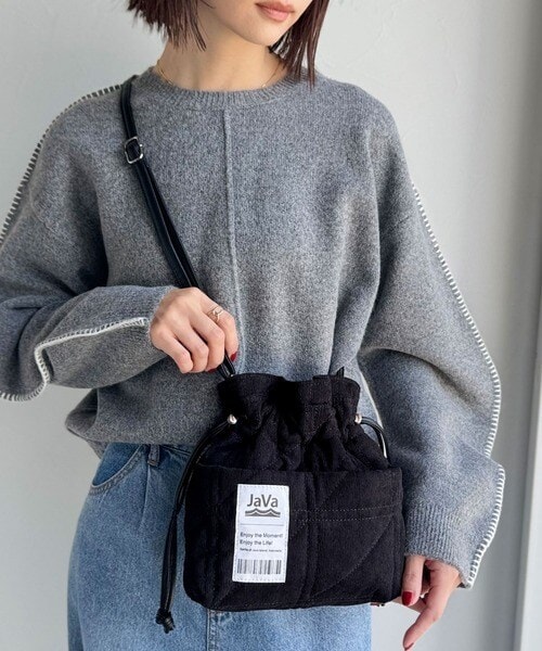 秋冬シーズンのスタイリングにピッタリなコーデュロイ巾着バッグ。