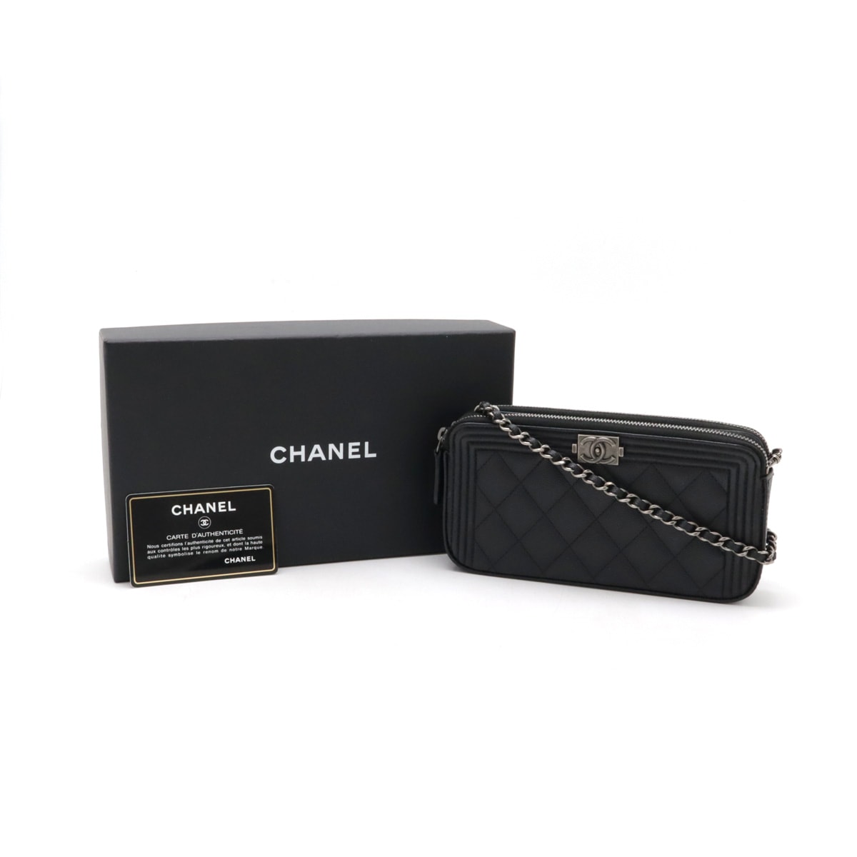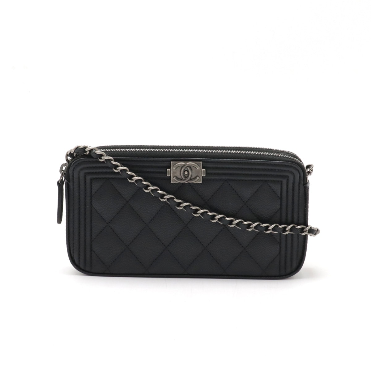 # CHANEL シャネル ボーイシャネル マトラッセ ココマーク チェーンウォレット ショルダーバッグ 2WAY クラッチ キャビアスキン ブラック 黒 A84069