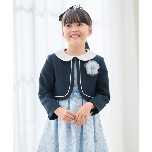 【ネイビー】子供服 ボレロ キッズ ベビー 子供 キッズ服 女の子 ジャケット 羽織 セレモニー オケージョン ノーカラー 七五三 お受験 入園式 卒園式 evercloset ever closet エバクロ エバークローゼット