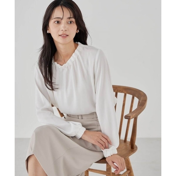 AOKI 九分袖 配色メロータックブラウス オフホワイト