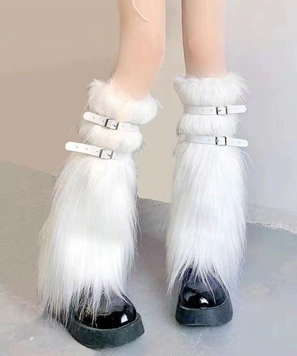 ベルト付きでふわふわ素材のレッグウォーマー。