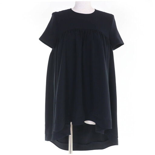 極美品▲YOKO CHAN ヨーコチャン YCB-320-223 フィッシュテール ヘムフレア 半袖 ブラウス ブラック 40 日本製 正規品 レディース【中古】