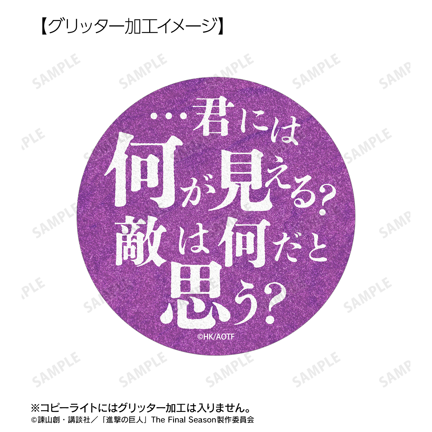 セリフ缶バッジにはグリッター加工を施しています。