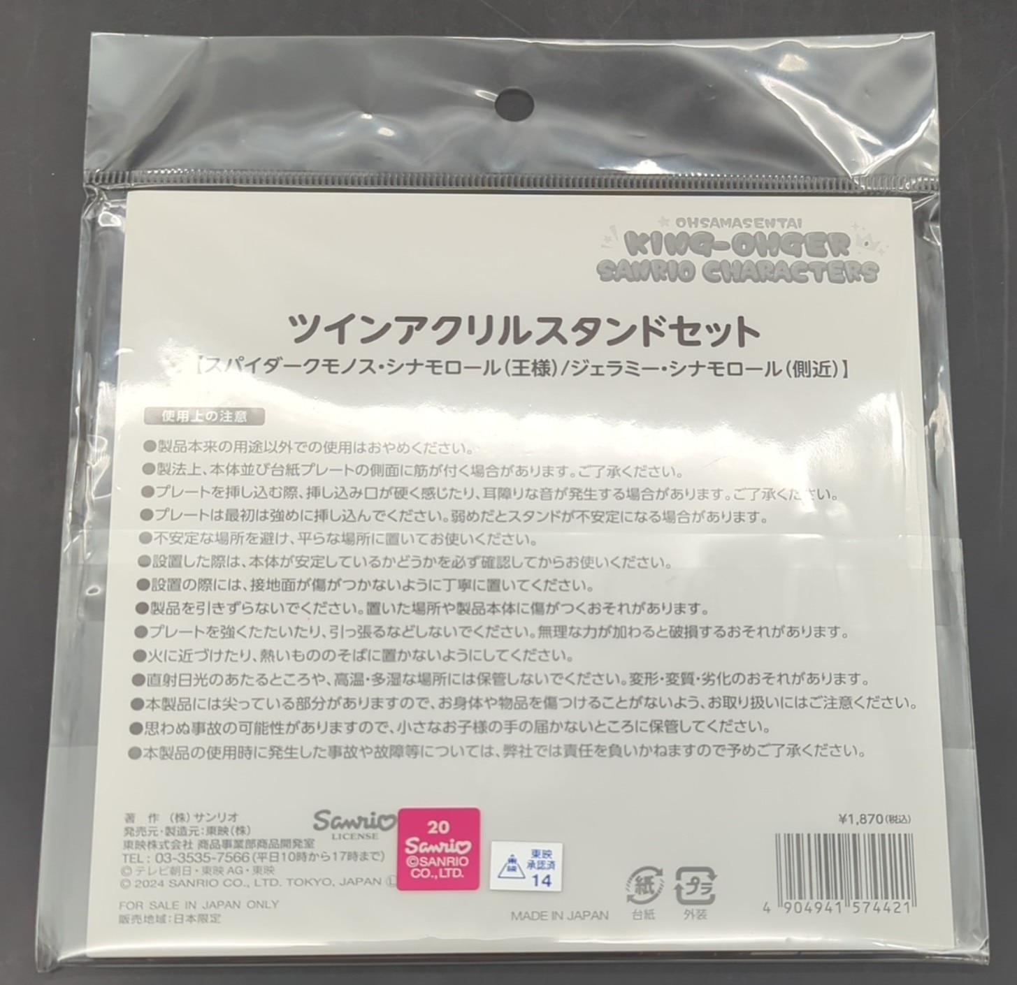 サンリオ/東映 ツインアクリルスタンドセット 王様戦隊キングオージャー×サンリオキャラクターズ スパイダークモノス・シナモロール(王様)/ジェラミー・シナモロール(側近)