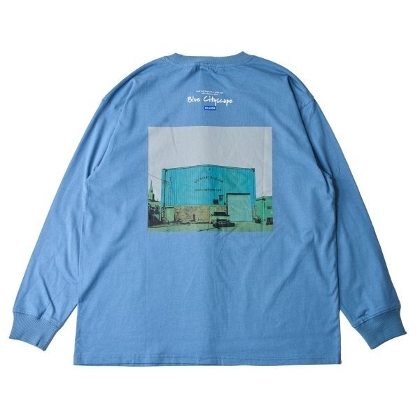 バックにシンプルなフォトのプリントとロゴが入ったクールなデザイン。