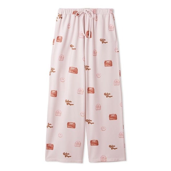 1日頑張った私へのスイートなご褒美。ドーナツタイムの幸せな気分を表現した、可愛いカラーリングのカットソーシリーズです。リングドーナツやドーナツの箱、ぷっくりとしたブランドロゴなどを組み合わせた、美味しそうな総柄プリントのロングパンツ。両脇にポケットを付けた、毎日気軽に着用していただけるベーシックなストレートシルエットです。カラーはクリームとピンクの2色展開。色ごとに異なるフレーバーのドーナツを描いています。同シリーズのドーナツ柄ロンTと合わせたり、ドーナツジャガードシリーズとのコーディネートもお楽しみください。